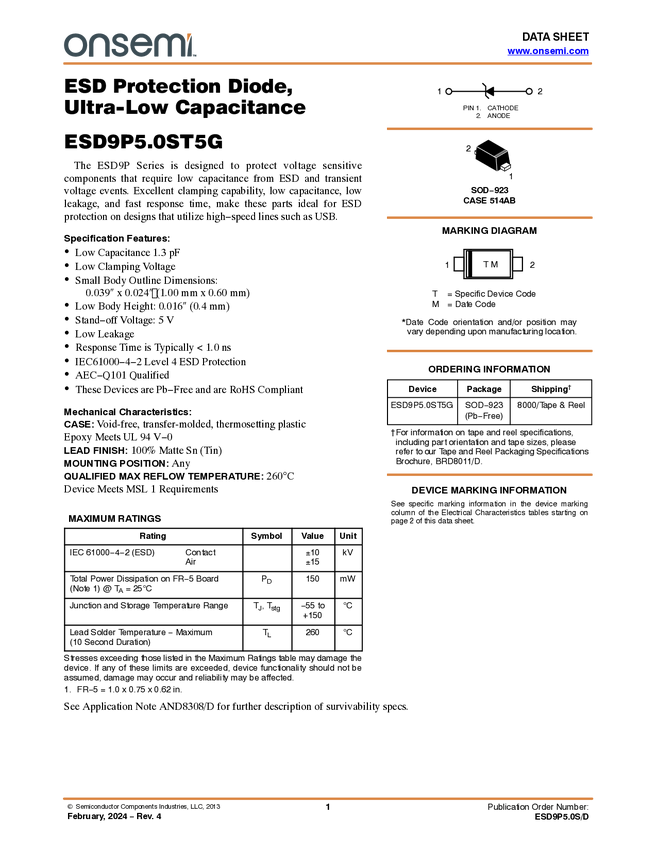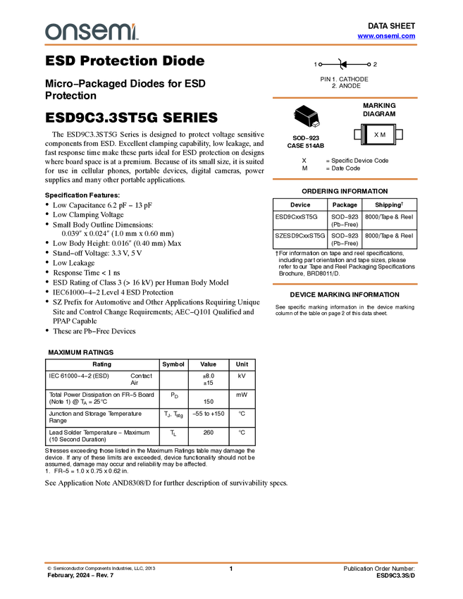 ESD Suppressor TVS ±15KV 2-Pin SOD-923 T/R