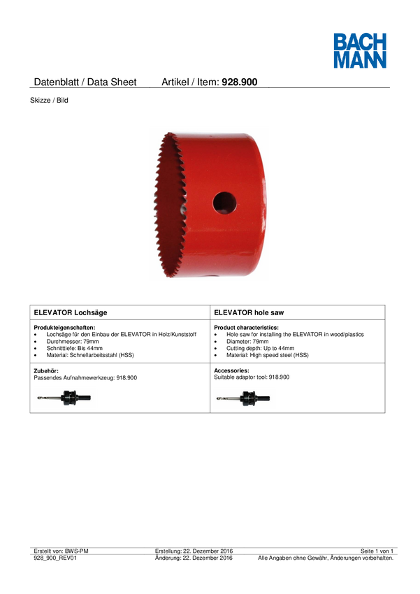 Otwornica Bachmann 928.900 928.900 1 szt.