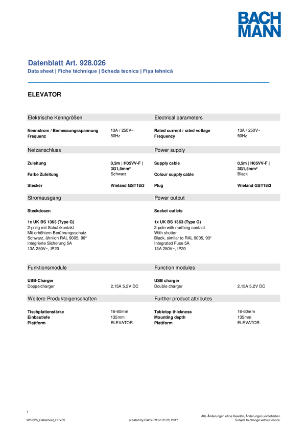 Listwa zasilająca Bachmann 928026 928026 Ilość gniazdek: 1