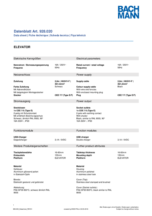 Listwa zasilająca Bachmann 928020 928.020 Ilość gniazdek: 1
