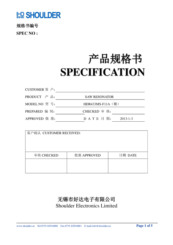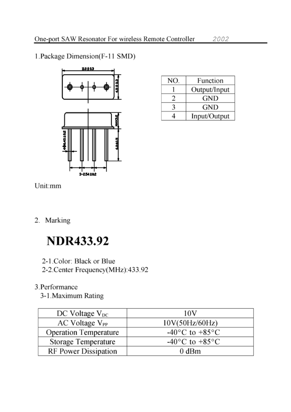 Rezonator SAW 433.92MHz, -45+85C, Shoulder