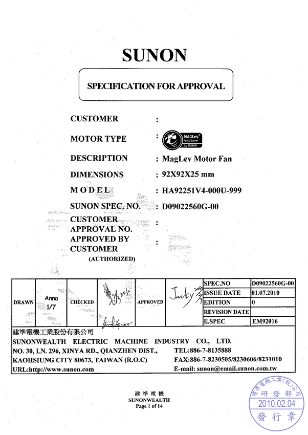 LUFTER 220V 92X25 2250U/M GA 40 dBA