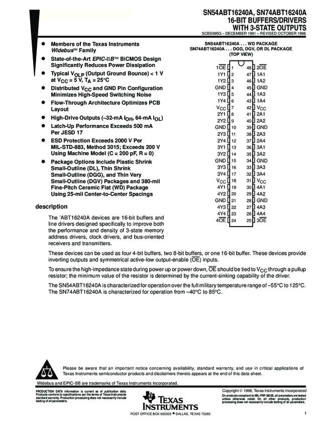 Buffer/Line Driver 16-CH Non-Inverting 3-ST BiCMOS 48-Pin CFPAK Tube