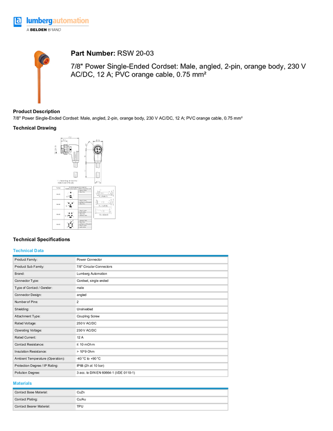 Lumberg Automation 934636321 Złącze konfekcjonowane czujnika/aktuatora 7/8" złącze męskie kątowe 0.50 m Ilość pinów: 2 1