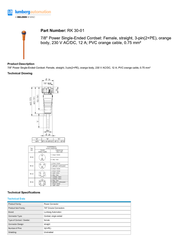 Lumberg Automation 934636400 Złącze konfekcjonowane czujnika/aktuatora 7/8" złącze, proste 0.50 m Ilość pinów: 2+PE 1 sz
