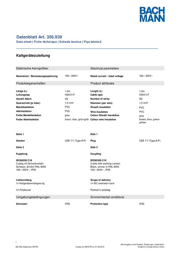 Przewód pomiarowy Stäubli XMF-419, 2.00 m, czerwony