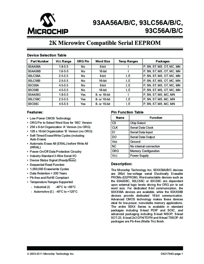 93XX56A/B/C - 2-Kbit Microwire Compatible Serial EEPROM