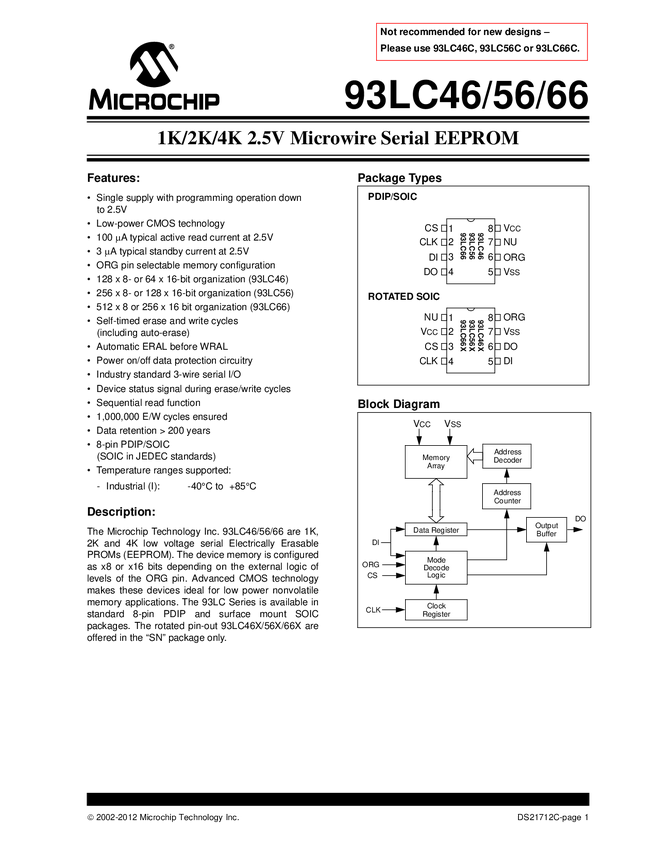 93LC46/56/66 Datasheet - Nor Recommended for New Design