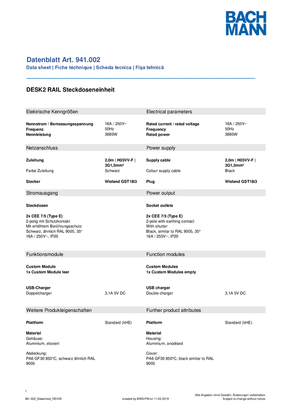 Gniazdo biurkowe Bachmann 941.002 941.002 2 x Ilość gniazdek: 2