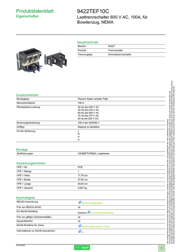 Schneider Electric 9422TEF10C Rozłącznik 1 szt.