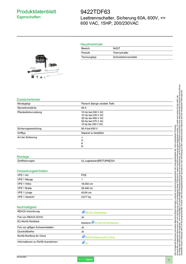 Schneider Electric 9422TDF63 Rozłącznik 9422TDF63