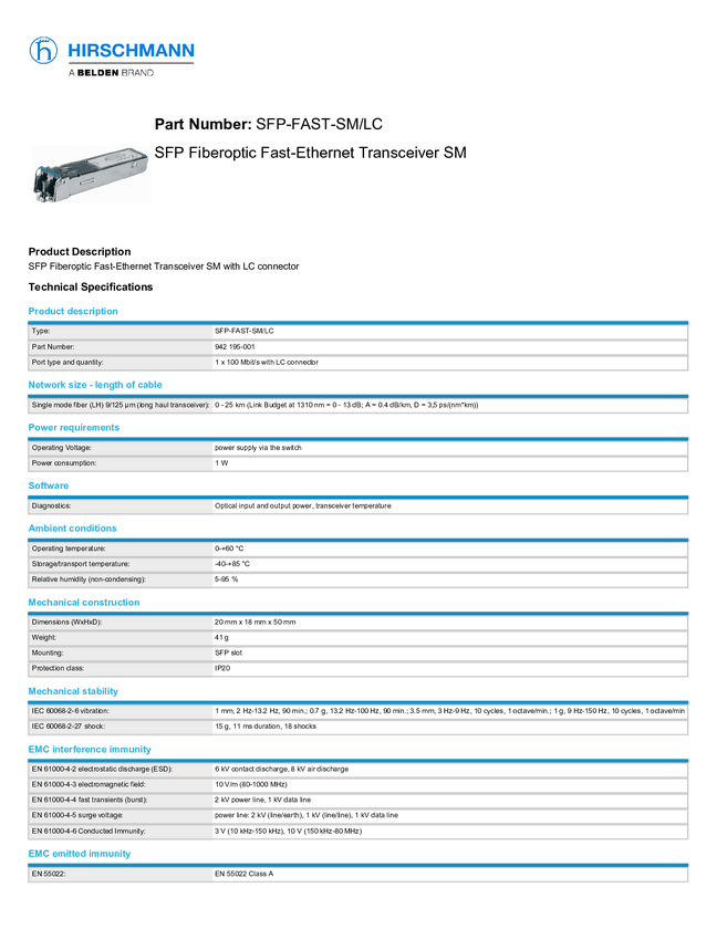 Hirschmann SFP-FAST-BA SM/LC EEC Moduł SFP