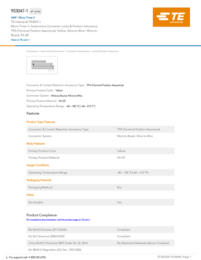 Timer - Connectors TE AMP Timer - Connectors 953047-1 TE Connectivity Zawartość: 1 szt.