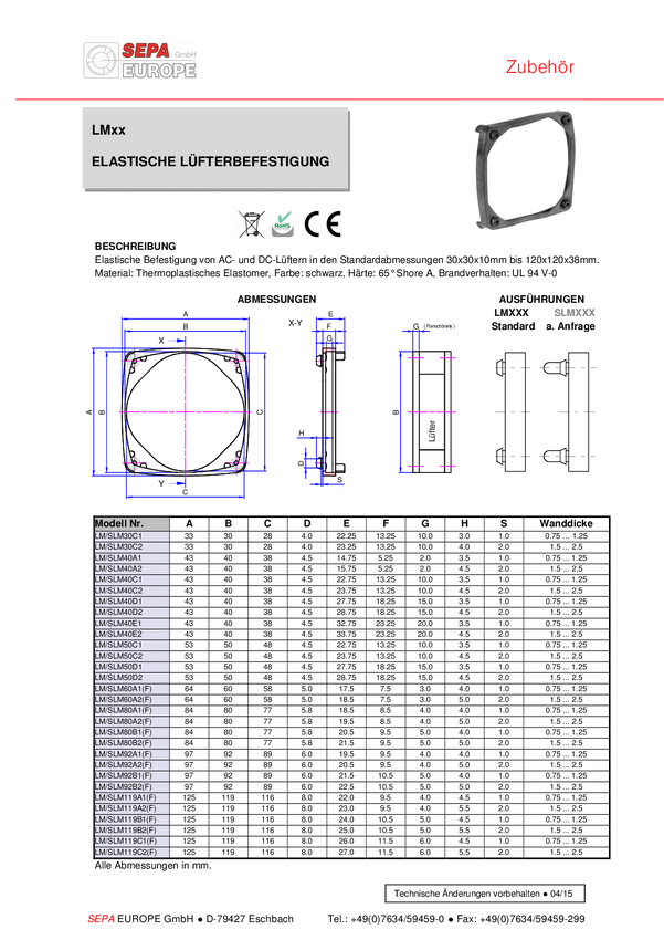 Podstawka montażowa do wentylatorów SEPA LM92A1, 97 x 97 x 9,5 mm, 959274010