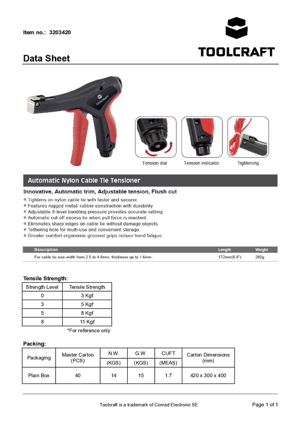 TOOLCRAFT TO-9610260 Zaciskarka do opasek kablowych HT04557, 4.8 mm
