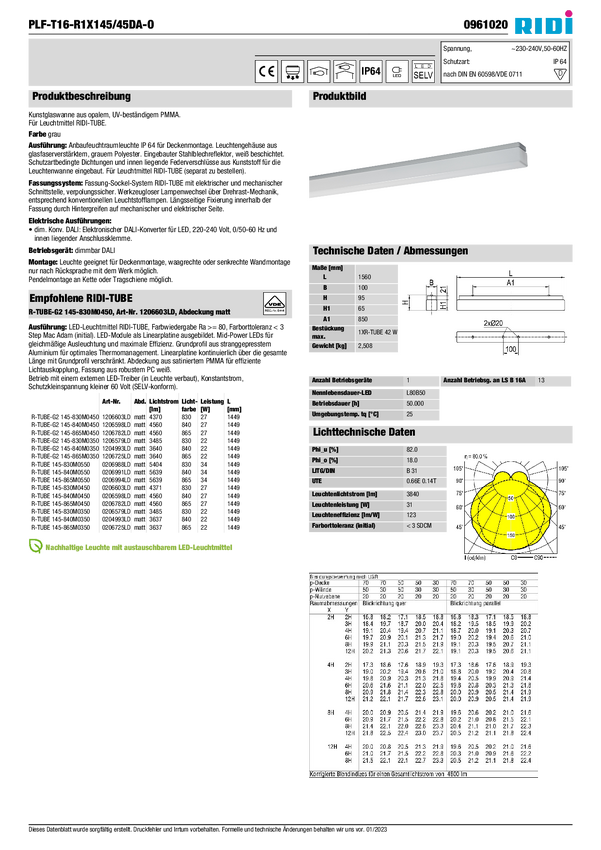 Lampa sufitowa RIDI 961020 961020 5410 lm szary