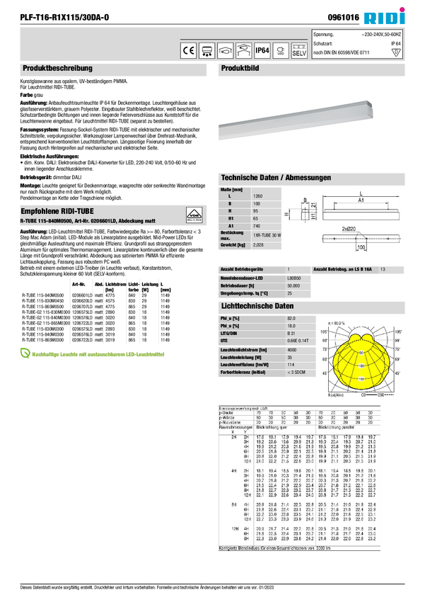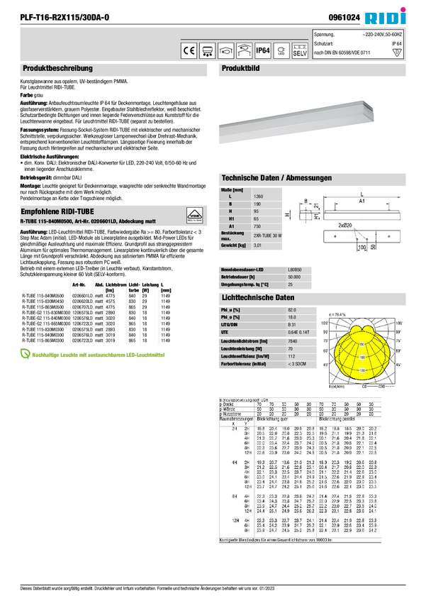 Lampa sufitowa RIDI 961022 961022 6060 lm szary