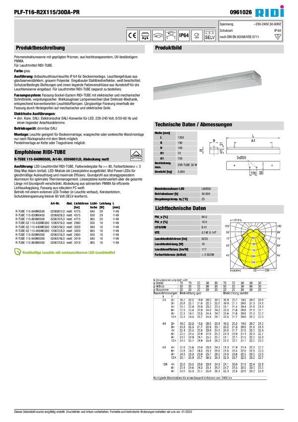 Lampa sufitowa RIDI 961026 961026 8390 lm szary