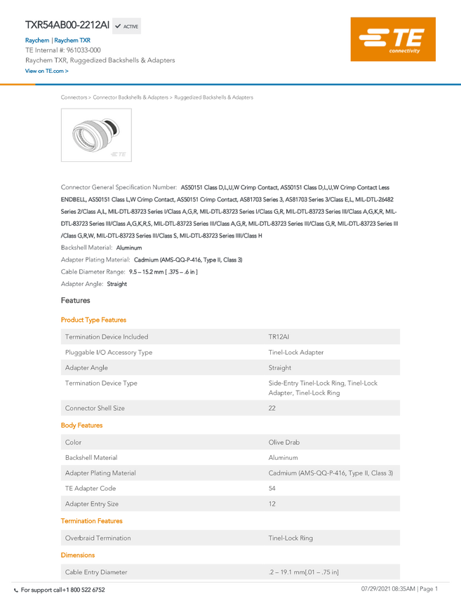 TE Connectivity 961033-000 TE RAY Tinel-Lock, 1 szt.