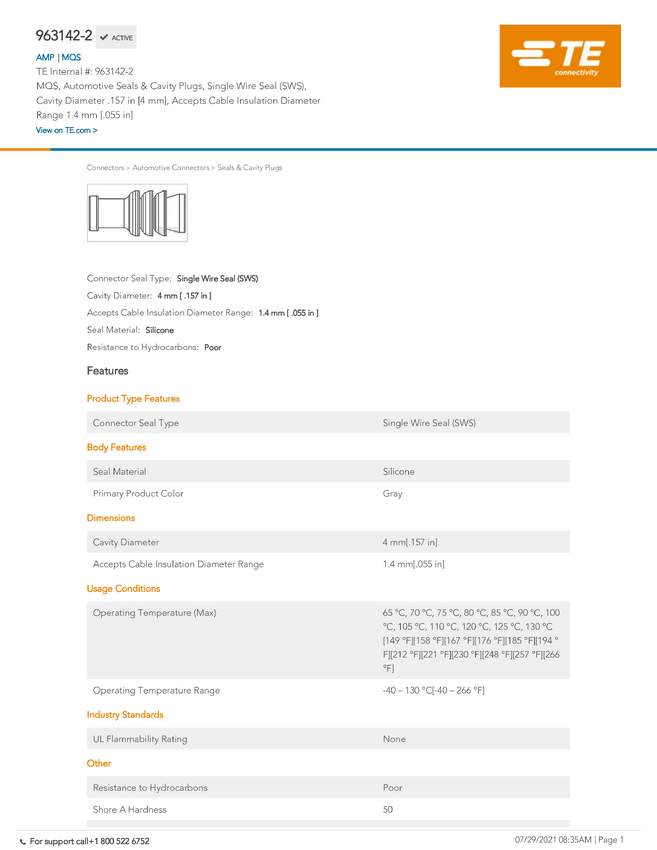 MQS - Seals TE Connectivity 963142-2, 1 szt.
