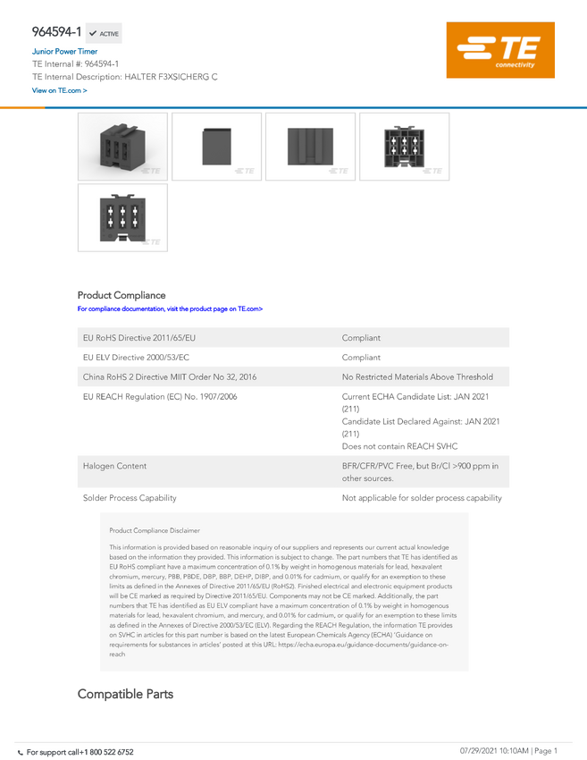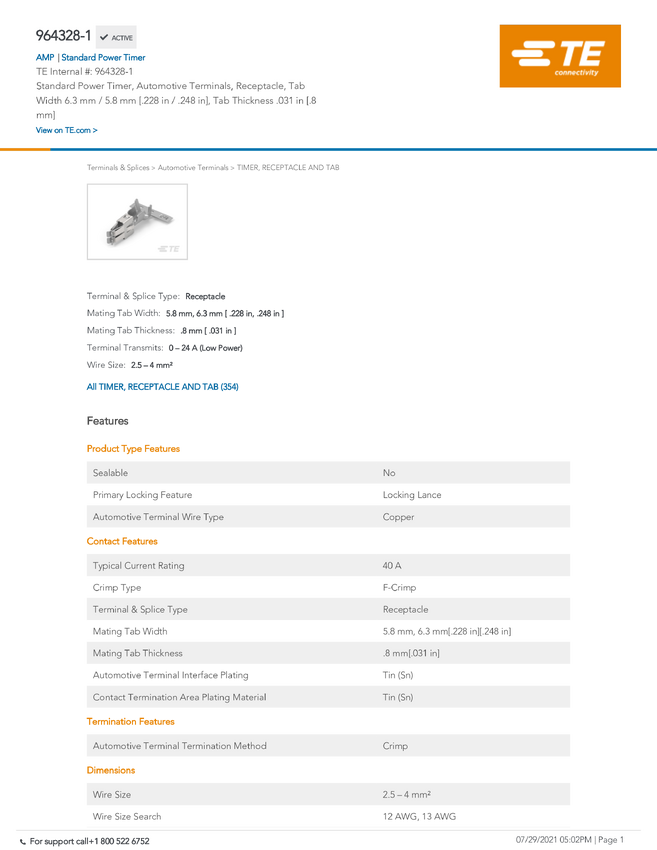 TE Connectivity TE AMP ICT Timers 964594-1, 1x -02050006777701