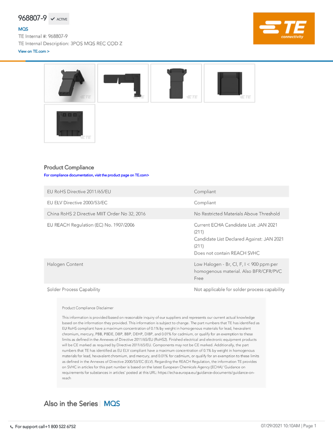 MQS - Connectors TE AMP MQS - Connectors 968286-2 TE Connectivity Zawartość: 1 szt.
