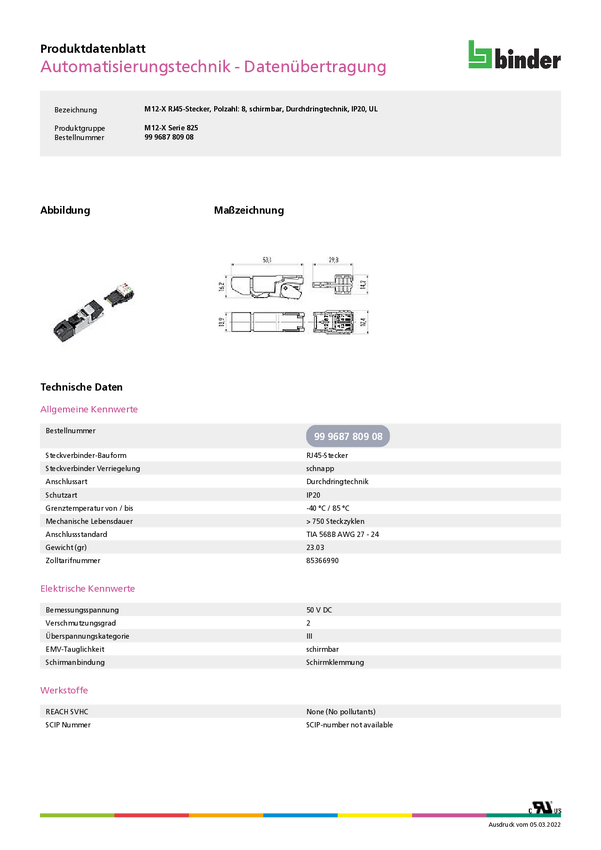 binder 99 9687 809 08-20 Złącze czujnika/aktuatora złącze męskie proste Ilość pinów: 8 1 szt.