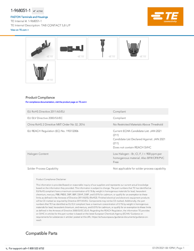 TE Connectivity 1-968051-1 TE AMP FASTON Terminals - Premier & Commercial, 1 szt.