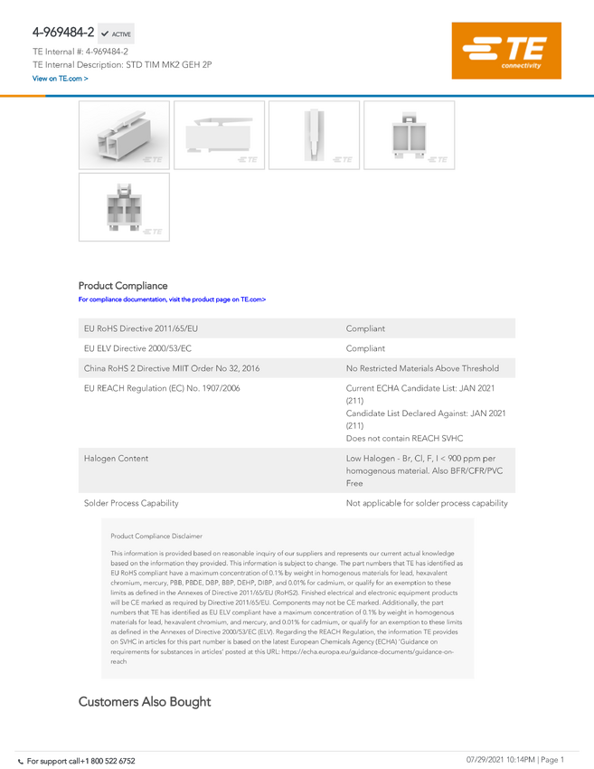 TE Connectivity 969326-1 TE AMP Universal MATE-N-LOK Connectors, 1 szt.