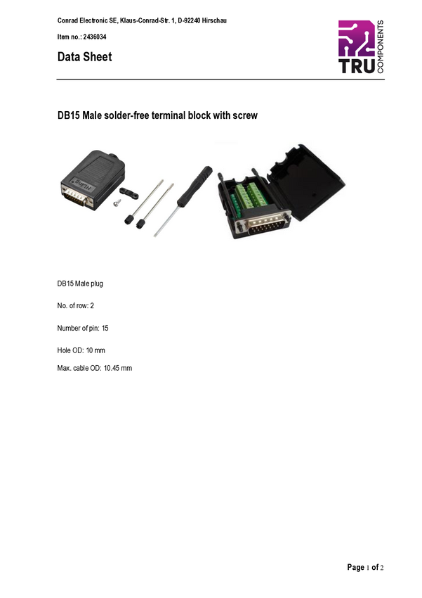 TRU COMPONENTS TC-9744136 Złącze D-Sub, rzędy: 2, styki: 15, 1 szt.