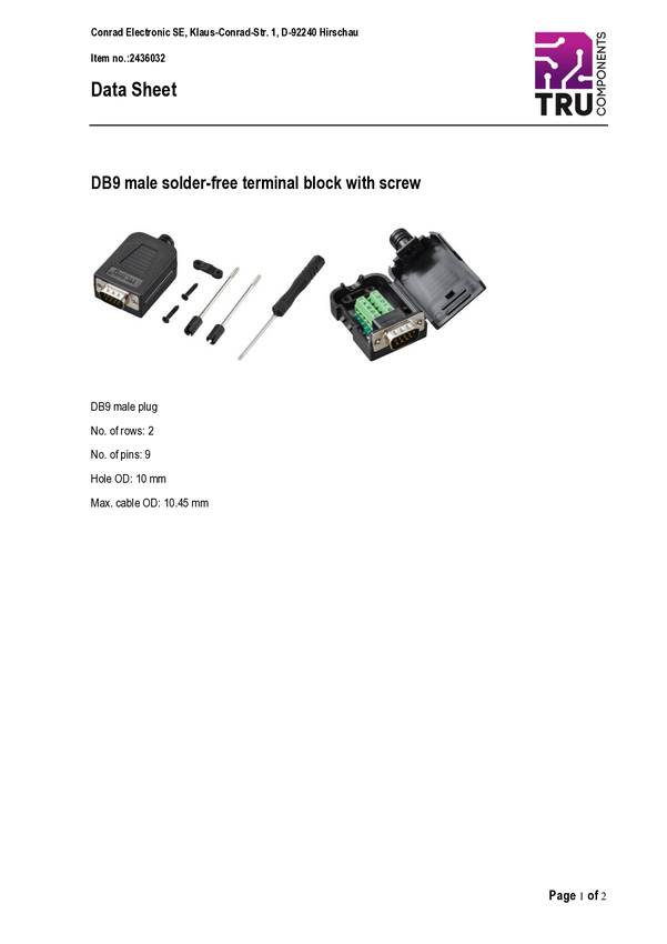 TRU COMPONENTS TC-9744128 Złącze D-Sub, rzędy: 2, styki: 9, 1 szt.