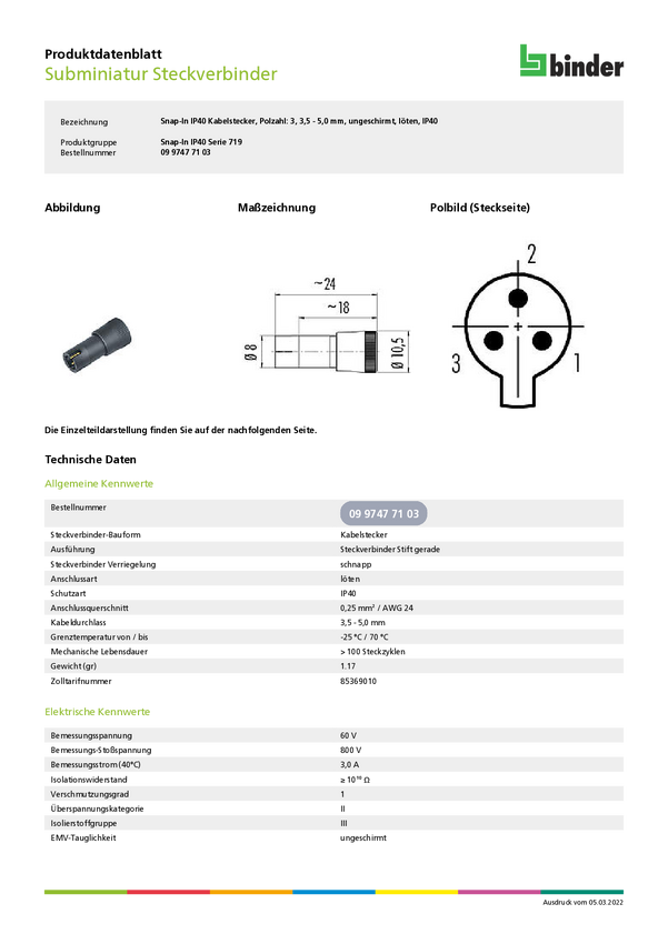 binder 09 9747 71 03-20 Złącze męskie kablowe 09 9747 71 03, 1 szt.