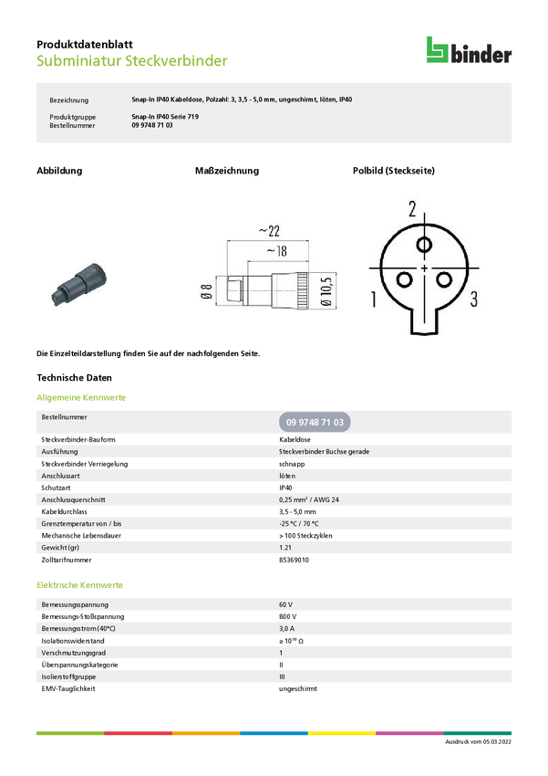 binder 09 9748 71 03-20 Złącze żeńskie kablowe 09 9748 71 03, 1 szt.