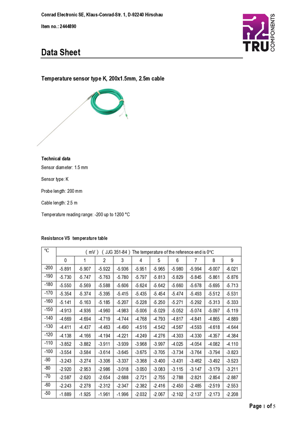 Czujnik temperatury TRU COMPONENTS TC-9779560, -200 do 1200 °C