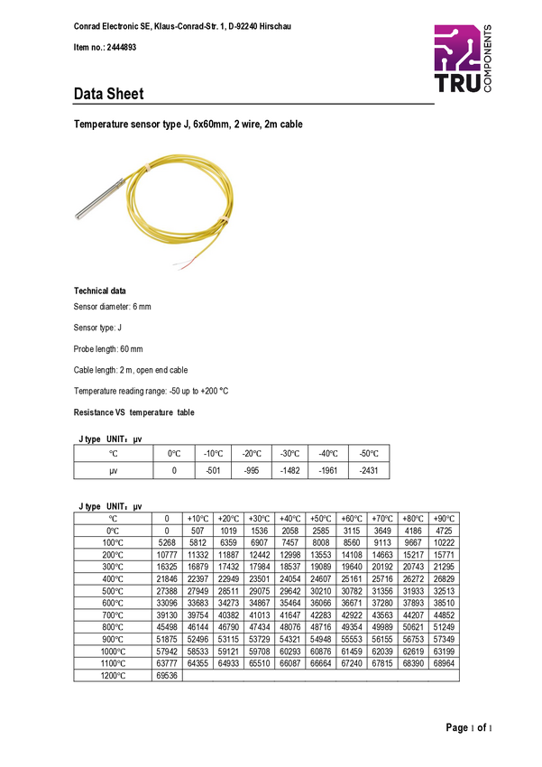 Czujnik temperatury TRU COMPONENTS TC-9779572, -50 do 200 °C
