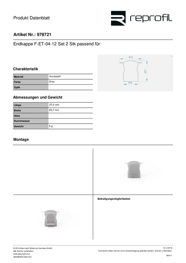 Deko Light 978721 F-ET-04-12 tworzywo sztuczne (S x G) 25.70 mm x 27 mm 1 szt.