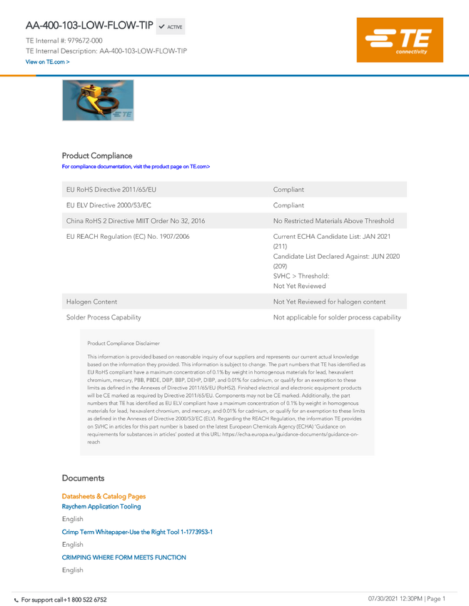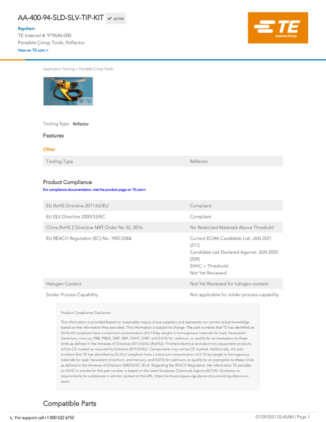 TE Connectivity TE RAY Application Equipment General Purpose 979646-000