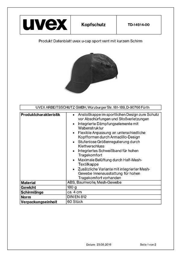 uvex u-cap sport vent 9794421 Czapka ochronna czarny