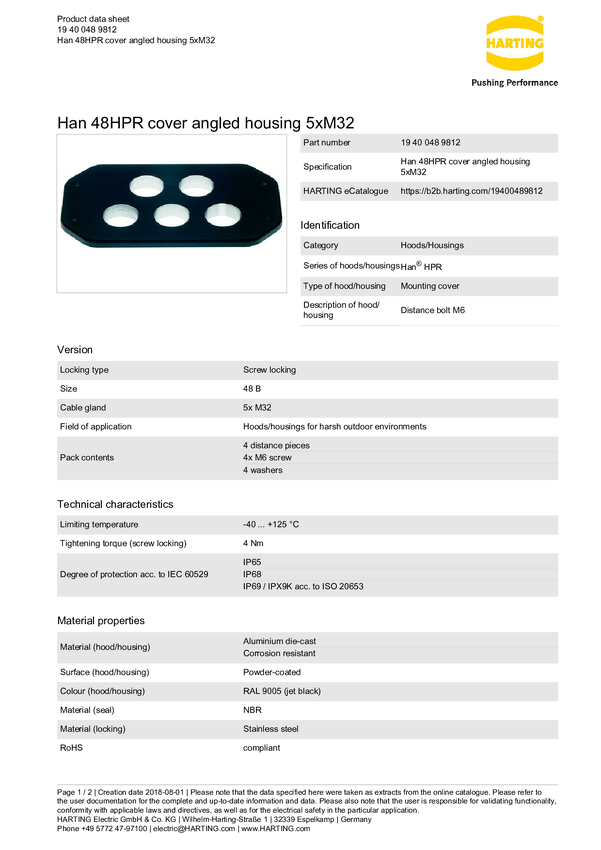 Złącze przemysłowe 19 40 048 9812 Harting Zawartość: 1 szt.