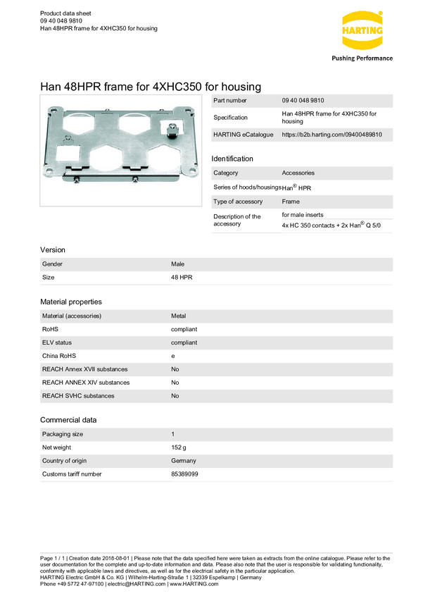 Złącze przemysłowe 09 40 048 9810 Harting Zawartość: 1 szt.