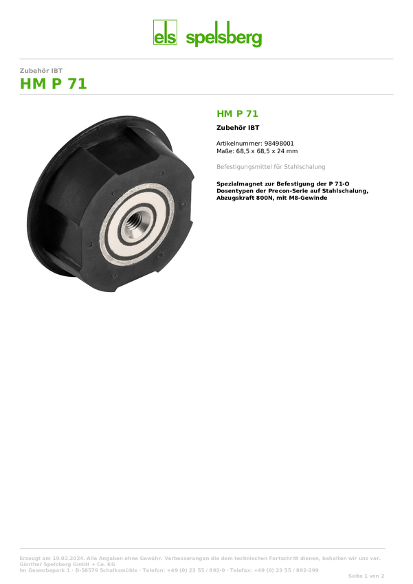 Magnes specjalny Spelsberg HM P 71 98498001 (D x S x W) 68.50 x 68.50 x 24 mm 1 szt.