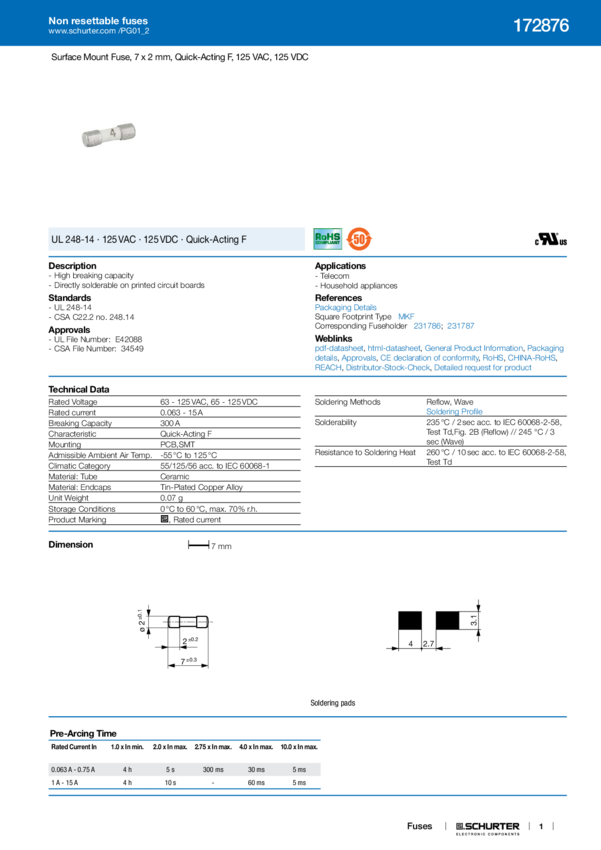 Fuse 10A 65V Fast 2-Pin Cartridge Holder T/R