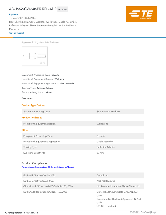 TE Connectivity TE RAY Application Equipment General Purpose 989523-000