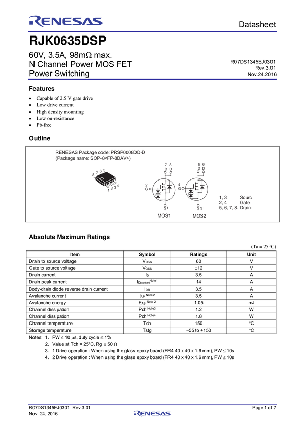 Nch Dual Power Mosfet 60V 3.5A 98Mohm Sop8