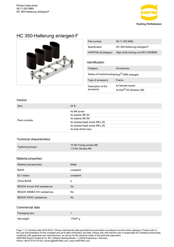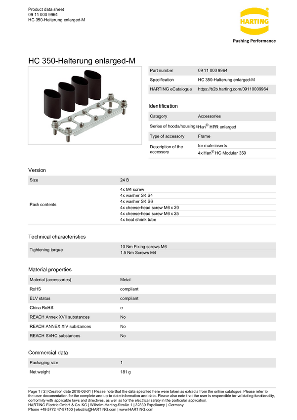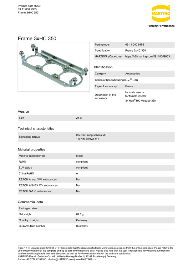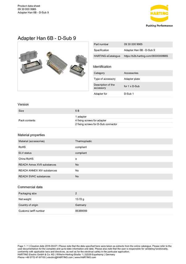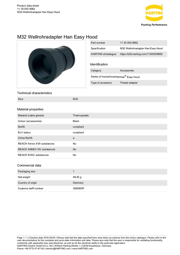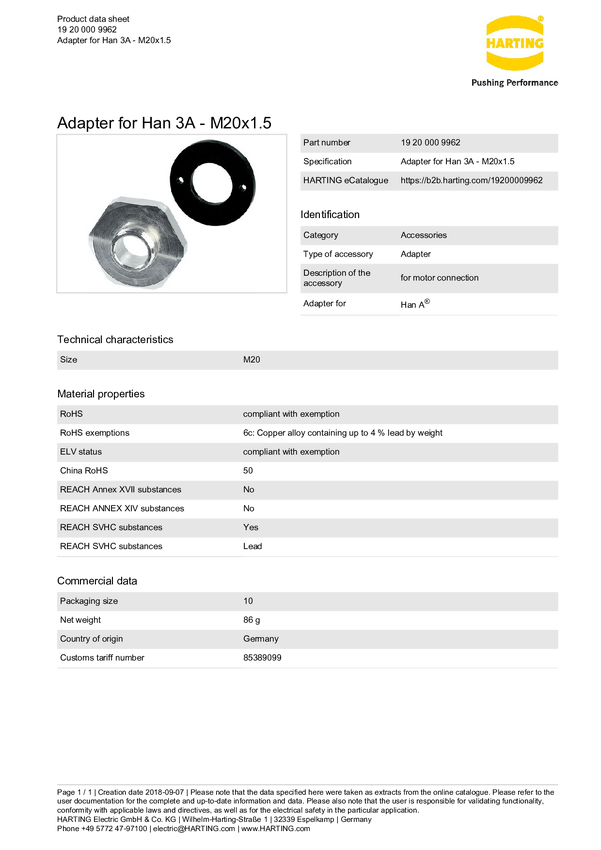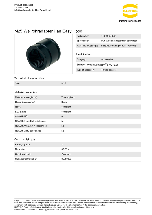 Adapter gwintu Harting 11 30 000 9961, 1 szt.