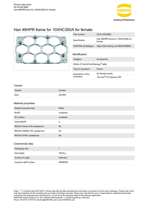 Złącze przemysłowe 19 20 000 9962 Harting Zawartość: 1 szt.