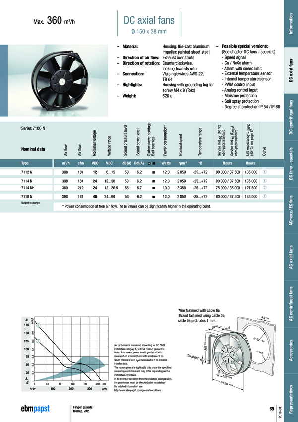 DC Fan Ball Bearing 24V 40W 311.9CFM 65dB Flange Mount