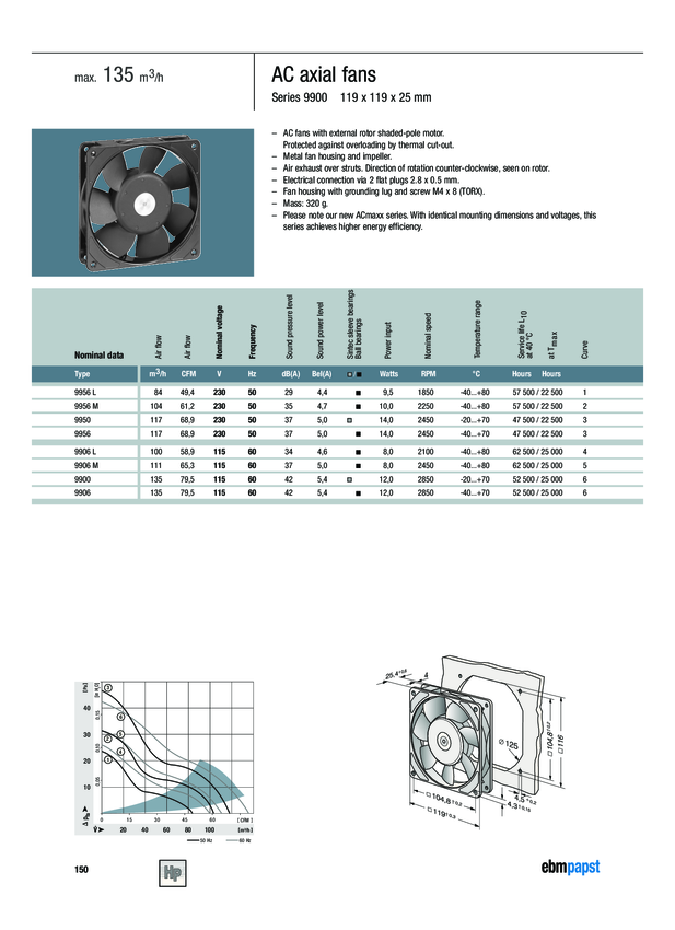 AC Fan Sintec-Sleeve Bearing 115V 11W 60Hz 3200RPM 35.9CFM 34dB Flange Mount