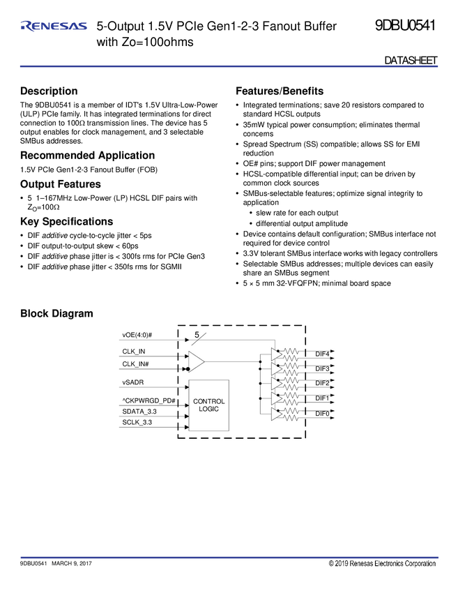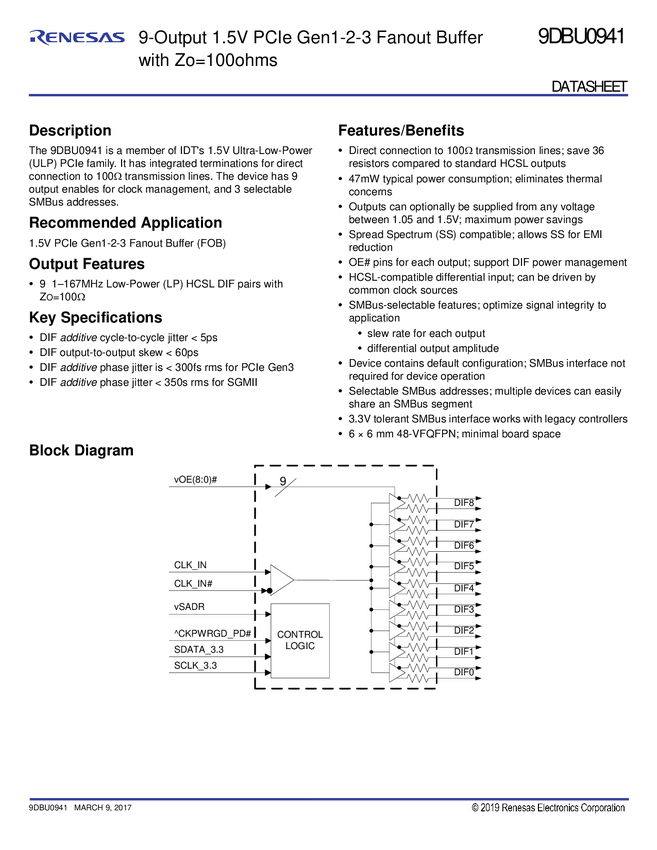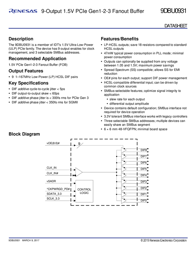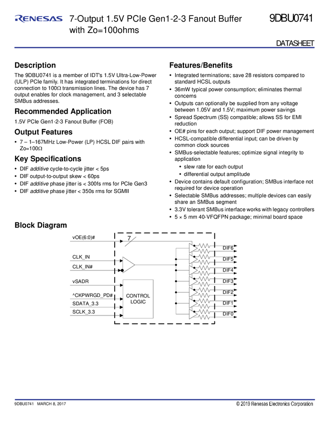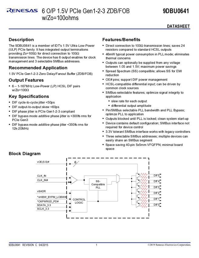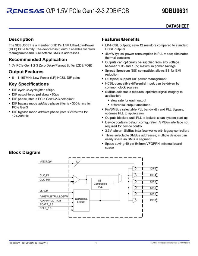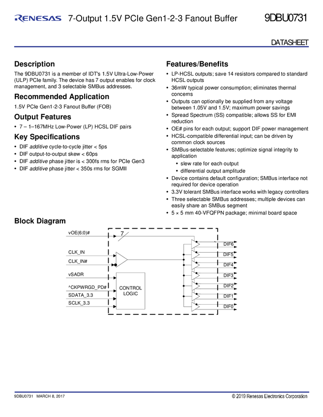 6-output 1.5V PCIe Zero-Delay/Fanout Clock Buffer
