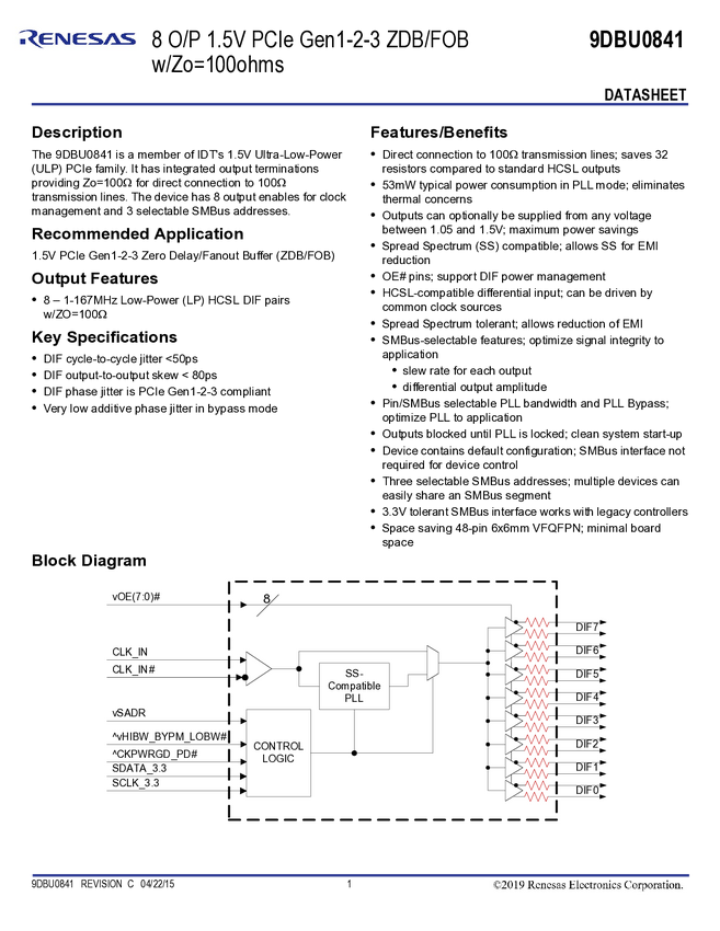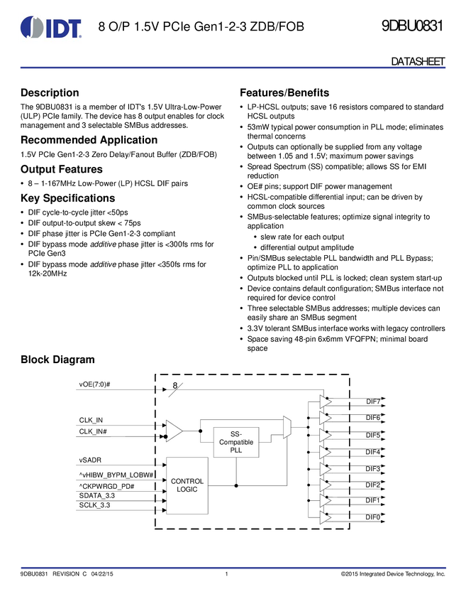 8-output 1.5V PCIe Zero-Delay/Fanout Clock Buffer